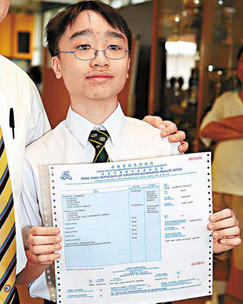 香港考評局把香港的會(huì)考中、英文科與IGCSE的評級掛鉤,因此其IGCSE英文科成績即相當(dāng)于香港會(huì)考的5*,中文科相等于第4級。而他最新應(yīng)考的托福試成績也達(dá)114分(滿分為120分)。