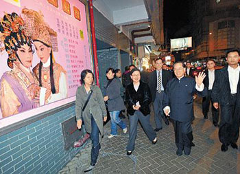 曾蔭權在過去兩個年度公布《施政報告》時,都特別提及要“致力保存及發(fā)展粵劇這門本土傳統(tǒng)藝術”,并承諾會“改善香港文化服務和場地的營運和管理”,積極保存和弘揚這“非物質文化遺產”。