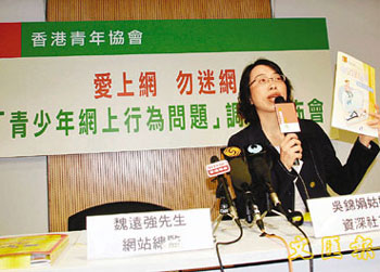 青協(xié)資深社工吳錦娟表示,青少年沉迷上網(wǎng),減少了他們與家人溝通及其它興趣的發(fā)展時間,對成長造成負面影響。她指出,青少年在網(wǎng)上交友,難以辨別對方的背景及企圖,應(yīng)避免與網(wǎng)友單獨會面。