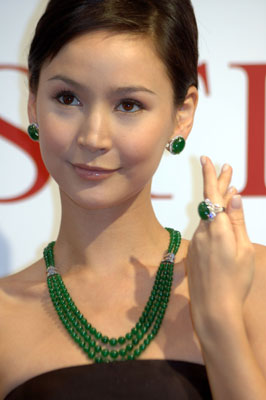 中新網10月23日電 據“中央社”報道,香港佳士得二十三日展出一些即將拍賣的珍品。其中包括歷來亞洲拍賣會上最大顆的鉆石吊膽項鏈、珍罕翡翠珠鏈與巨型貓眼石等。