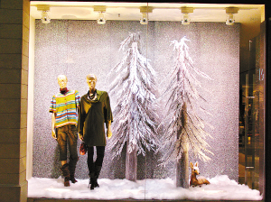 除了燈飾,估計很多女孩子最喜歡看的還是商店櫥窗吧。雖然已經(jīng)有部分品牌已經(jīng)開始打折,不過一來不是那些十分大牌的品牌,二來折扣也未算去到最低,吸引力剛夠你的心跳那么一下而已。比它們更吸引的是大牌子專賣店的櫥窗。和廣州的商家不同,澳門的品牌專賣店櫥窗大多都是由專門的櫥窗設(shè)計師負責(zé)打理的,通常都會設(shè)計得很立體和整體性很強,譬如某品牌的節(jié)日裝修就是從櫥窗后面“種”出好幾棵許愿樹,把櫥窗和正常的店面連接起來,模特就穿著當(dāng)季服飾站在樹下,任顧客去仔細研究,甚至你伸手去摸也沒關(guān)系。