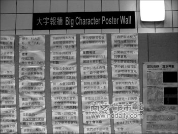 內地生抱怨在香港科大受到歧視,香港科技大學圖書館附近有個被稱為“民主墻”的公共張貼欄。在2007年7月,民主墻上就出現一個大字報,首次將內地學生感覺被“侮辱”現象公之于眾。