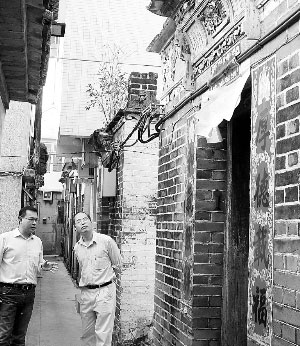 陳崇輝與本報特派記者盧林在木湖村參觀民居。(圖片來源:深圳特區報)