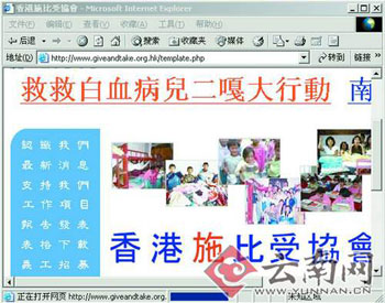 登錄香港“施比受協(xié)會(huì)”的網(wǎng)址后,記者發(fā)現(xiàn),這個(gè)網(wǎng)站上的首頁(yè)還在最醒目的位置,用紅顏色的大號(hào)字體滾動(dòng)著“救救白血病兒二嘎”這樣的內(nèi)容。然而大標(biāo)題中的主角“二嘎”由于病情的惡化已經(jīng)于5月下旬離開(kāi)了人世(本報(bào)曾作過(guò)報(bào)道)。