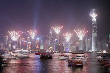 二十三時五十九分,行政長官曾蔭權在尖沙嘴文化中心啟動倒計時儀式。二00七年的最后二十秒,國金二期北面外墻兩側由三十二層起依次向上燃放焰火,火樹銀花照耀整個維港;合和中心、AIG大廈、長江集團中心及東企業廣場四棟大廈,外墻同時顯示倒計時時間,停泊在維港的滅火輪則向海面噴射多樣的水花……