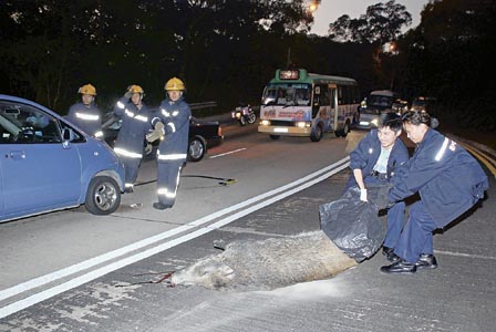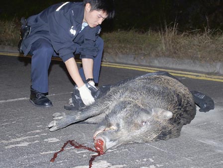 香港400磅巨型野豬亂過路 被車撞飛吐血亡(圖)