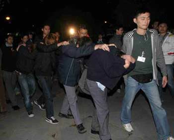 未幾,該批少年男女便旁若無人,浩浩蕩蕩操往海心公園。當抵達景云街時,便遇上獨自赴約的少年,雙方進入公園談判,由于實力過分懸殊,一言不合之際黑學生便自恃人多勢眾,將少年包圍狂毆。尾隨跟蹤的探員立即沖出喝止,從四方八面趕至增援的同僚亦抵達。