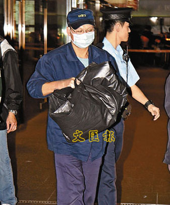 一名初生女嬰的尸體,遭人棄置在中環(huán)環(huán)球大廈外,事后由仵工送去殮房。(圖片來源:文匯報(bào))