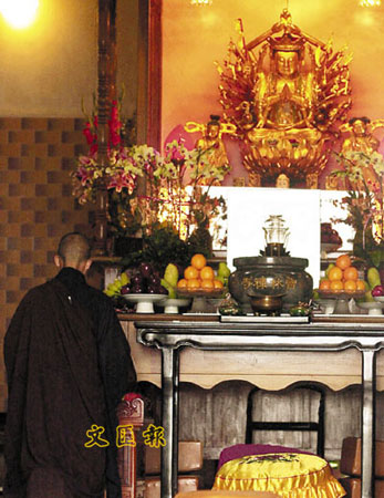 現(xiàn)場(chǎng)為地塘仔寶林禪寺,這次被竊匪偷去的金手鏈價(jià)值1萬(wàn)元,屬善信捐贈(zèng),掛在一尊擺放在大雄寶殿的千手觀音像上。該尊1米高的千手觀音像,本來(lái)掛有很多善信捐贈(zèng)的金器,但半年前遭夜盜洗劫一空后,金手鏈成為碩果僅存的供品,寺廟當(dāng)時(shí)已勸止善信再掛上金器。