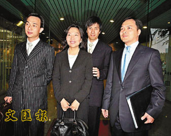 資料圖:香港上市公司太平洋興業前主席蔣麗莉被控詐騙的案件,三月四日上午在香港東區裁判法院再提訊。蔣麗莉被加控兩項罪名,分別指她于二零零一年,環康集團有限公司招股時,隱瞞自己在環康的股份權益,以及又涉嫌在同年環康集團的招股章程,有一項不真實陳述。蔣麗莉是老牌工業家蔣震的女兒,曾經獲選為香港杰出青年,在去年當選為香港總商會第一位女主席。圖為蔣麗莉(中)步出東區裁判法院。 中新社發 譚達明 攝