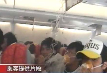 由學生在機上拍攝的短片可以清楚聽到,機上廣播先是叫大家趴低。隔了一陣,機艙內的氧氣罩啟動,廣播再叫乘客戴上氧氣罩,并告知乘客,飛機的一號引擎發生事故,但二號引擎仍然運作,“我們現在折返首都機場,大約需時15分鐘。”