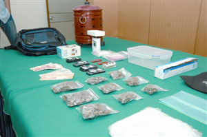 警員隨后帶同疑犯到其位于北區的寓所調查,在其睡房一個背囊內發現電子秤、膠袋等懷疑毒品包裝工具。警員隨后作仔細搜查,在單位門外化寶盆內發現一個密封的膠盒,內里共有9包共重177克的毒品“大麻花”。