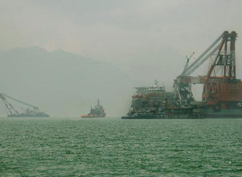 “華天龍”會將沉船翻正,然后吊起。殘骸被吊離海面后,會進行搜尋失蹤船員。