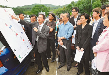 立法會共有7名議員到發生大車禍的事故地點考察,聽取路政署官員和警方交通部介紹事發路面的交通安全安排。