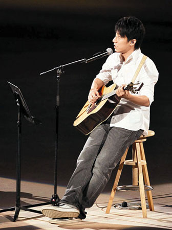 圖:房祖名自彈自唱送給四川災區人民。(圖片來源:文匯報)
