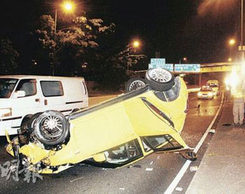 黎海榮去年9月斥資近16萬元,購買一輛鈴木Swift Sport黃色小跑車。4日凌晨4時(shí)許,他駕車沿大埔道慢線往沙田方向行駛,擬返回沙田馬場參與晨操,但駛至銀禧花園對(duì)面一個(gè)左彎時(shí),黎海榮報(bào)稱因閃避切線車輛導(dǎo)致失控,跑車撞向路邊石柱及掃毀一段鐵欄后,反彈回路中四輪朝天,再滑行約30米橫在路中。