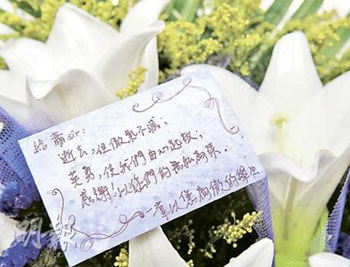 一群曾經(jīng)由殉職消防隊(duì)員蕭永方訓(xùn)練的消防學(xué)員,獻(xiàn)上鮮花及寫(xiě)有“逝去但傲氣不滅”等字句的心意卡,向蕭永方致敬及表示懷念。(圖片來(lái)源:明報(bào))
