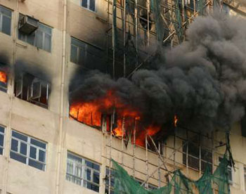 消防員趕抵時肇事單位已陷入火海,于是派人登樓疏散近百工人到安全地方,并架起云梯射水及派煙帽隊進入火場灌救。火警在21分鐘后升為三級,廠房內冒出火舌及大量黑煙,整條街道曾被黑煙籠罩,望不到肇事大廈外貌。