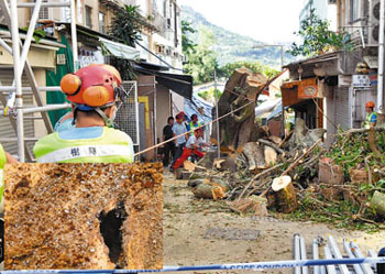 中新網(wǎng)8月29日電 據(jù)香港大公報(bào)報(bào)道,香港赤柱日前發(fā)生塌樹造成一死兩傷慘劇,康文署連夜將現(xiàn)場清理,鋸去樹干及樹枝,寫上編號(hào)運(yùn)走重組樹身研究意外成因。塌下的百年老樹樹身發(fā)現(xiàn)大洞,已遭嚴(yán)重蟲蛀。有專家疑與“刺桐姬小蜂”侵襲有關(guān),指香港的刺桐樹普遍被侵蝕,雖可殺蟲但不能根治。