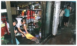 低地商戶清理積水。(圖片來源:澳門日報)