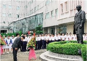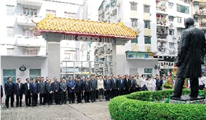 中新網10月10日電 據澳門日報報道,為紀念辛亥革命97周年,澳門社會各界人士9日在鏡湖醫院孫中山銅像前集會,向孫中山銅像敬獻花籃,緬懷偉大的革命先行者孫中山。