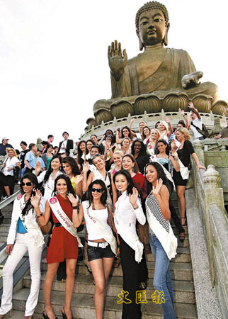 一班佳麗到達(dá)大嶼山寶蓮寺后,顯得很興奮,更爭取拍照留念機(jī)會,引來大批旅客圍觀。大會安排十位保安人員維持秩序。