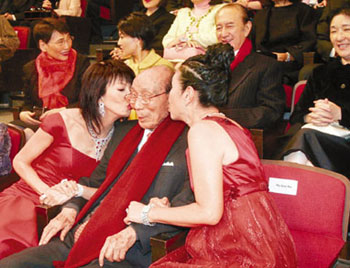 兩位司儀汪明荃和鄭裕玲左右親六叔。(圖片來源:文匯報)
