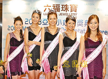 中新網(wǎng)12月11日電 據(jù)香港《文匯報(bào)》報(bào)道,五位新鮮“出爐”的亞洲小姐:冠軍姚佳雯、亞軍顏?zhàn)臃啤⒓拒娰?lài)琳恩及兩位友誼小姐姚鳳鳳與林淑蓉,10日到香港北角珠寶首飾贊助商門(mén)巿領(lǐng)獎(jiǎng)。