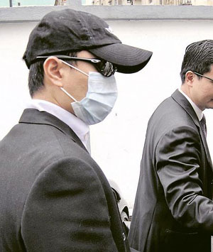 身穿西裝的被告朱文祥(41歲)30日剛出庭即四處張望,聽取答辯期間也不時向記者席打量,他在應訊后沿后門乘坐私人律師的七人車離開。