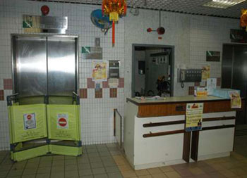 香港馬鞍山恒安村一部升降機,四條鋼纜其中一條日前突然斷裂。圖為出事電梯。(圖片來源:大公報)