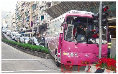 中新網1月15日電 據澳門日報報道,一輛旅游巴接載仁愛安老院十多名行動不便的長者參觀澳門回歸賀禮陳列館后,回程時經松山隧道進高士德大馬路天橋時,疑剎車失靈狂沖下斜。當時培正中學對面的交通燈位有一輛的士正在候燈,巴士為免撞到的士,扭轉沖上花圃,再沖向安全島才停下,但仍撞及的士。