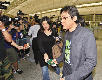 中新網4月22日電 據香港《文匯報》報道,香港歌手衛詩在日本涉藏毒案本月24日在日本開審。衛詩父親與Amusic的兩名助手,22日凌晨出現機場,準備乘機往日本,對30多名在場等候記者的提問,一律拒回應,全程黑面。