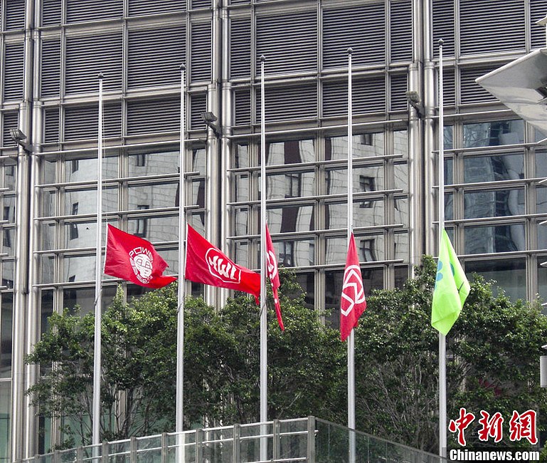 香港李嘉誠長江集團中心下半旗致哀