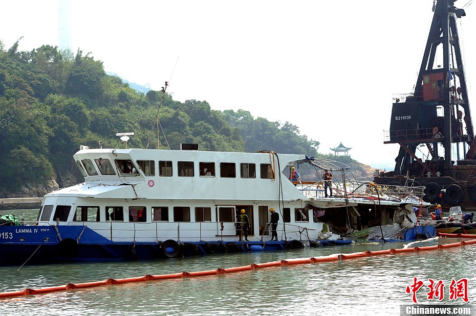 香港撞船事故:“南丫四號”被撈起 船尾受損嚴重