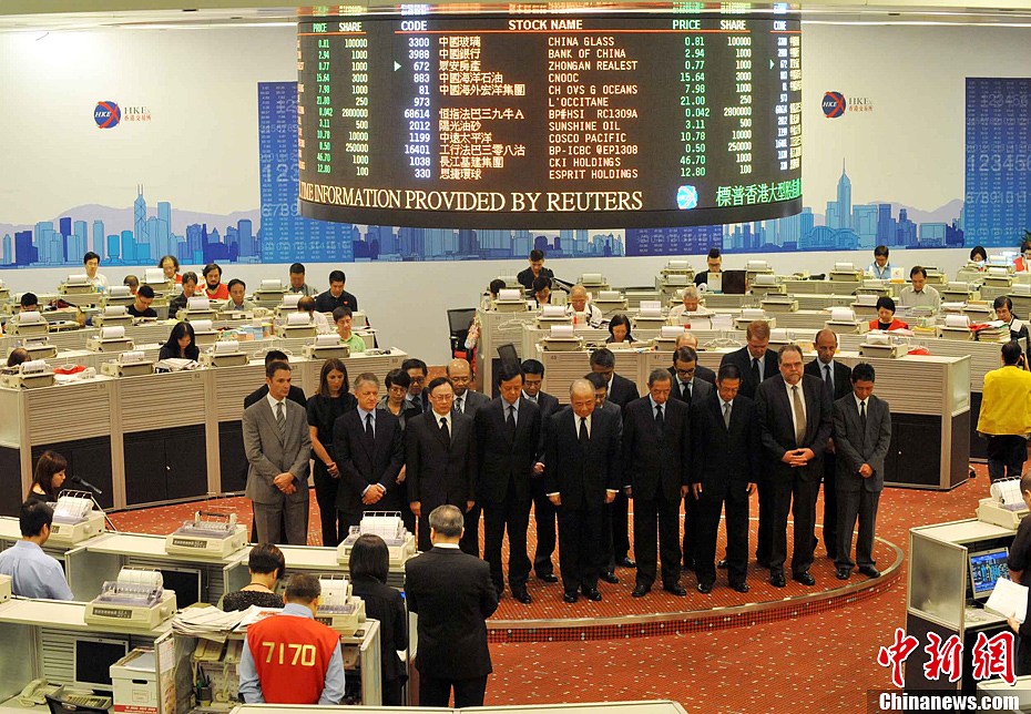 港交所主席周松崗等在港交所場內默哀