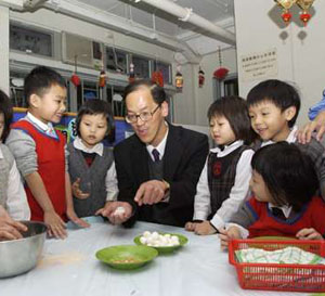 因應(yīng)該會慶祝三十五周年,曾德成特別送上一個大蛋糕,幼兒園內(nèi)的小朋友見到局長到來,也非常高興,十多名小朋友熱情地與曾德成一起制作愛心湯圓,并品嘗小朋友親手造的愛心湯團(tuán),分外喜悅。