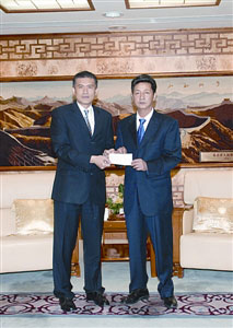 14日共有30多個單位到中聯辦送交善款,中聯辦主任白志健,副主任徐澤、陳啟明等接收款項。