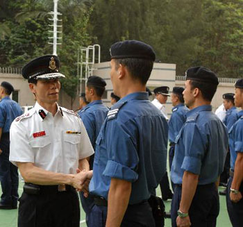 消防處處長盧振雄在東涌消防局為搜救隊送行。期間,行政長官曾蔭權亦致電為隊員打氣。