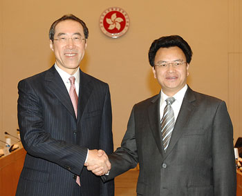 唐英年和廣東省副省長萬慶良,23日在香港共同主持工作會議。雙方同意,第11次粵港合作聯席會議今夏在廣州舉行,而多項作項目及工作計劃也達成共識。