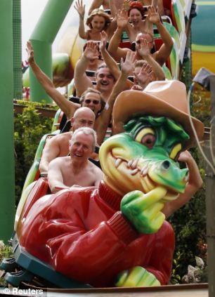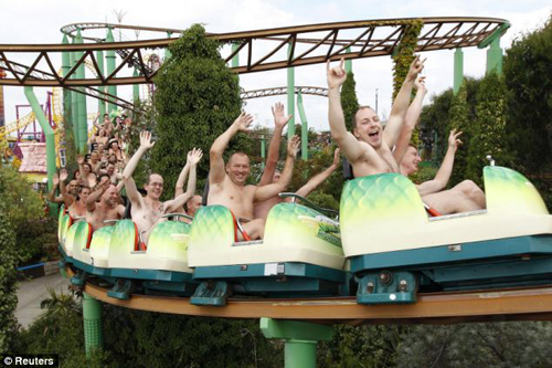102名英國裸體男女同坐過山車 破世界紀錄(圖)