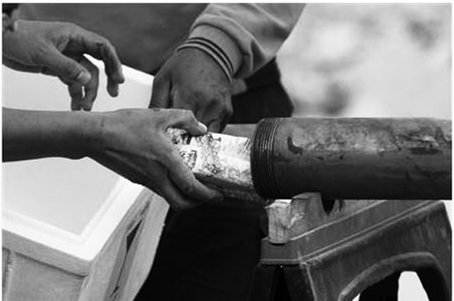 救援者每天通過一根細小的管道,給井下的礦工們提供食物