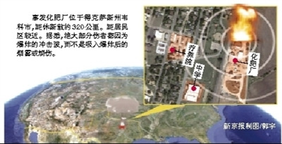 化肥廠共有約2.45萬公斤液態氨,它們在爆炸后可能大量擴散到空氣中。有毒氣體可能威脅當地居民健康。