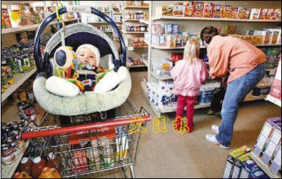 據香港《文匯報》14日報道,在俄亥俄州一間特賣店,有女孩買過期沙拉醬、蔬菜和糖果零食。這類店有各類過期食品,其中一間擺放了滲水炸粟米餅和過期4個月的意大利粉醬,也有過期藥物出售。