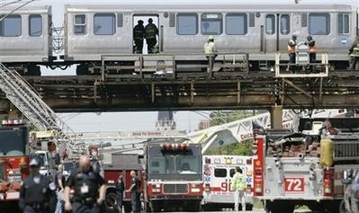 芝加哥高速運輸管理局發言人霍欣斯基說,當天上午10時左右,這列包括4節車廂的列車行至城南一處高架軌道上,前兩節車廂突然脫軌,而后兩節車廂依然停留在高架軌道上。
