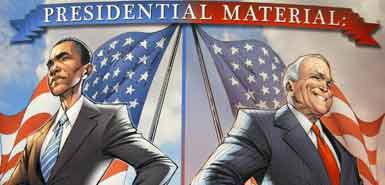 漫畫:奧巴馬(圖左)與麥凱恩(圖右)