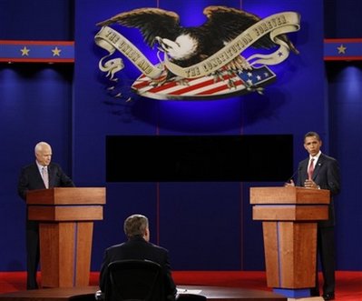 辯論開始,奧巴馬指責麥凱恩支持布什政府七千億大規模救市計劃。奧巴馬稱,美國目前正在遭遇的經濟危機顯示了共和黨8年政策的失敗。