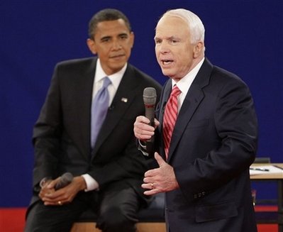 中新網10月8日電 綜合報道,美國當地時間10月7日晚上21點左右(北京時間10月8日早上9點左右),美國共和黨總統候選人麥凱恩和民主黨總統候選人奧巴馬在田納西州的貝爾蒙特大學開始辯論,這是兩人選舉議程的三場辯論中的第二場辯論。
