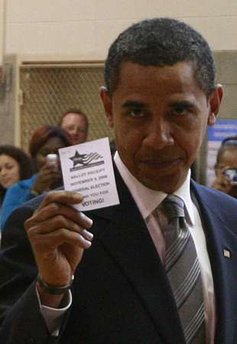 奧巴馬這位來自伊利諾伊州的參議員投票日下午來到芝加哥西部的一所體育館打籃球。