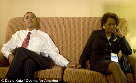 競選結果公布當晚,奧巴馬和岳母一起等待結果