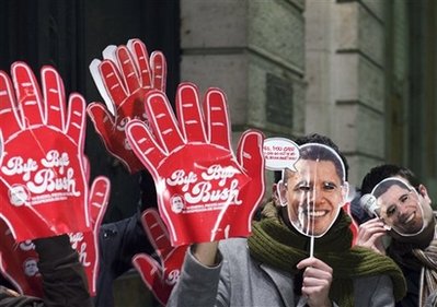奧巴馬18日在林肯紀(jì)念堂五十萬人出席的音樂會(huì)上,感謝出席人潮擁抱寒冷。音樂會(huì)開場兩小時(shí)后,奧巴馬與未來的第一夫人米歇爾出現(xiàn)在林肯紀(jì)念堂前,現(xiàn)場頓時(shí)沸騰。從林肯紀(jì)念堂到反思池,再到一公里外的華盛頓紀(jì)念方碑,人們一邊歡呼,一邊試圖用相機(jī)記錄下這歷史性的一刻。